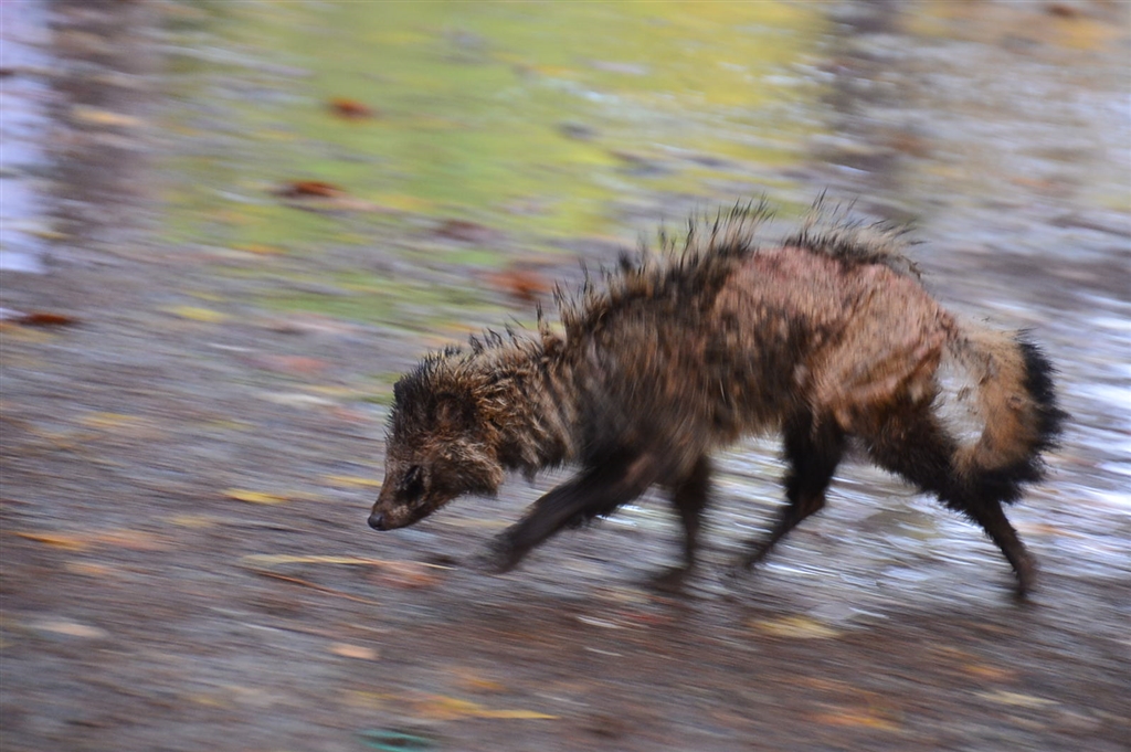 湯滝にいた野生のタヌキ
