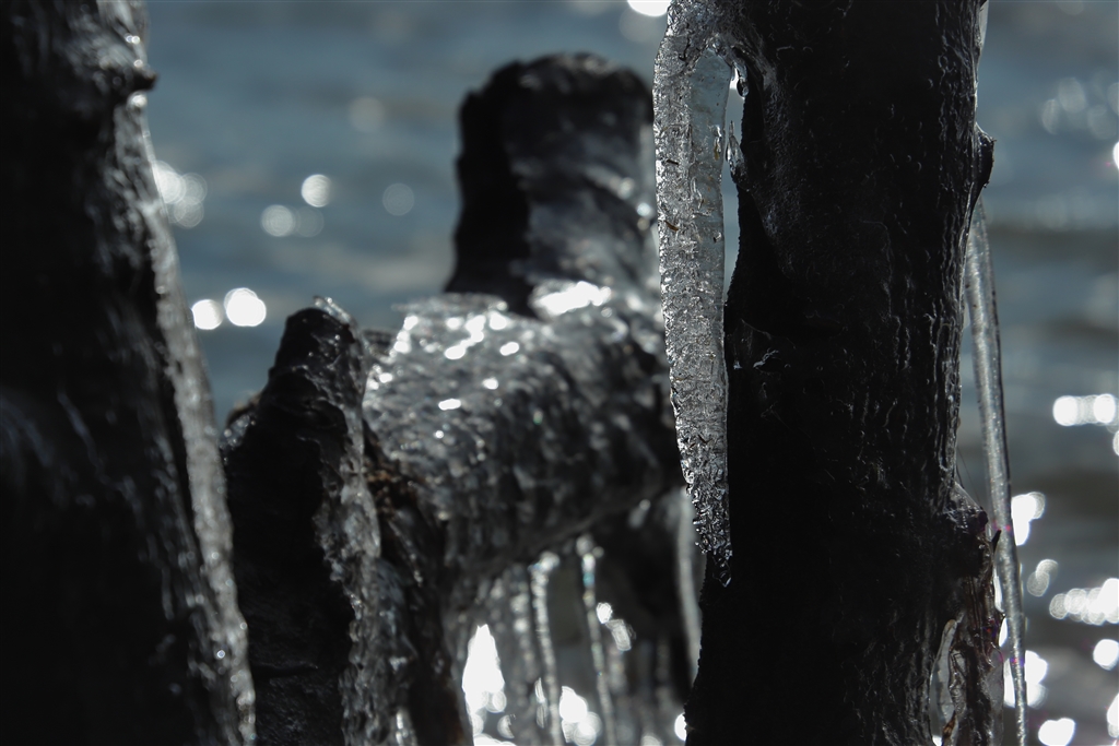 湖上のしぶき氷の花