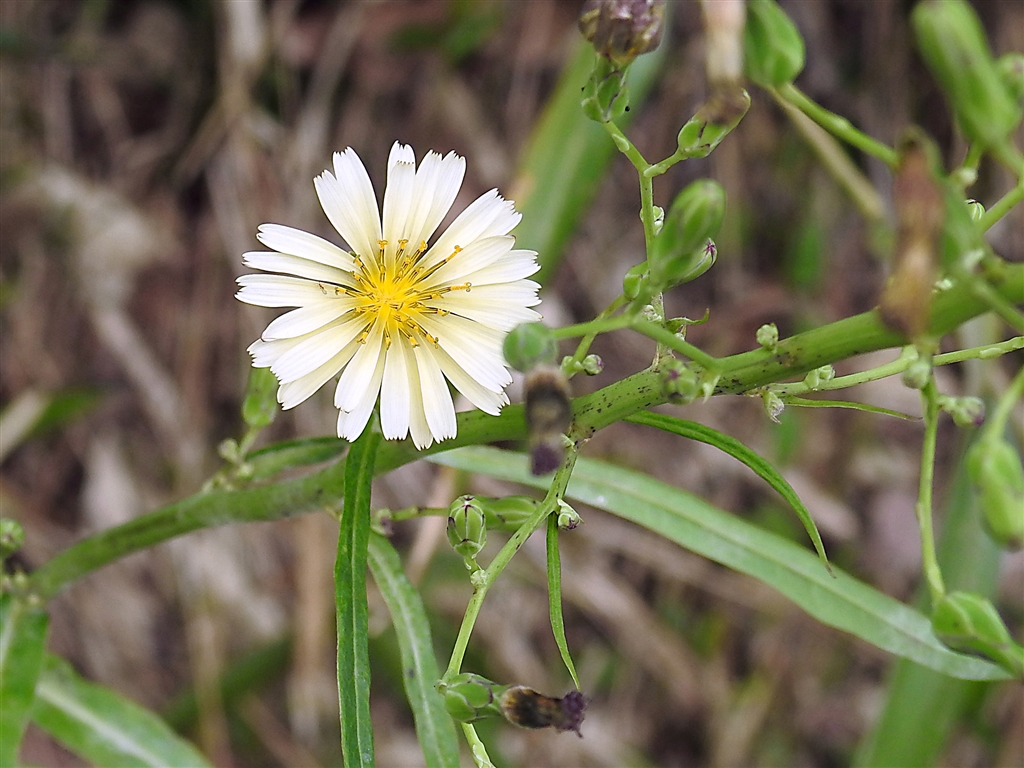 ホソバアキノゲシ アキノゲシとの違い、葉が細披針形、切れ込みなく茎抱かず。花同じ