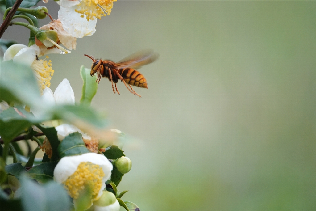 「くる禁」 SS不足でぶれていますが、お茶の花にはもれなくスズメバチ
