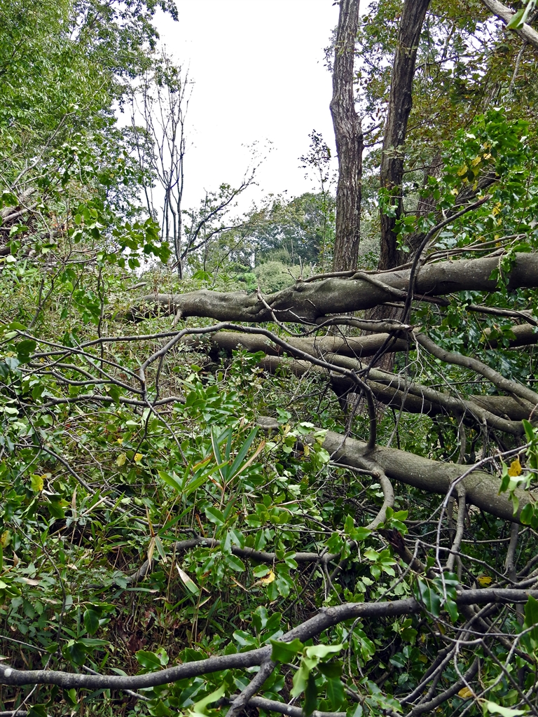 里山に残る台風の爪痕。倒木がアチコチで通せんぼ。