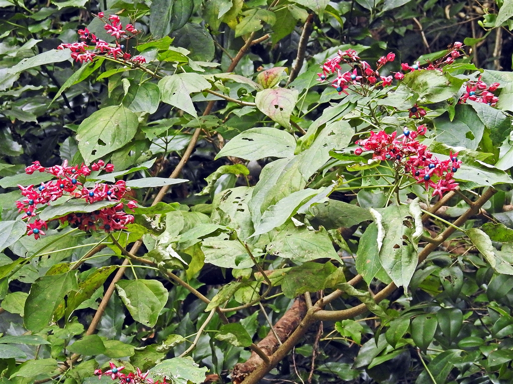 クサギ(臭木)の実 枝葉に悪臭。夏に白い花、秋の実は派手配色。赤は萼片、実は藍青色