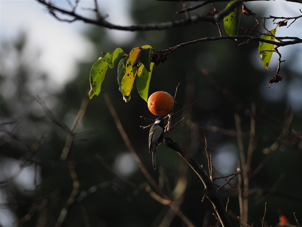 熟柿にメジロではなくなぜかシジュウカラ