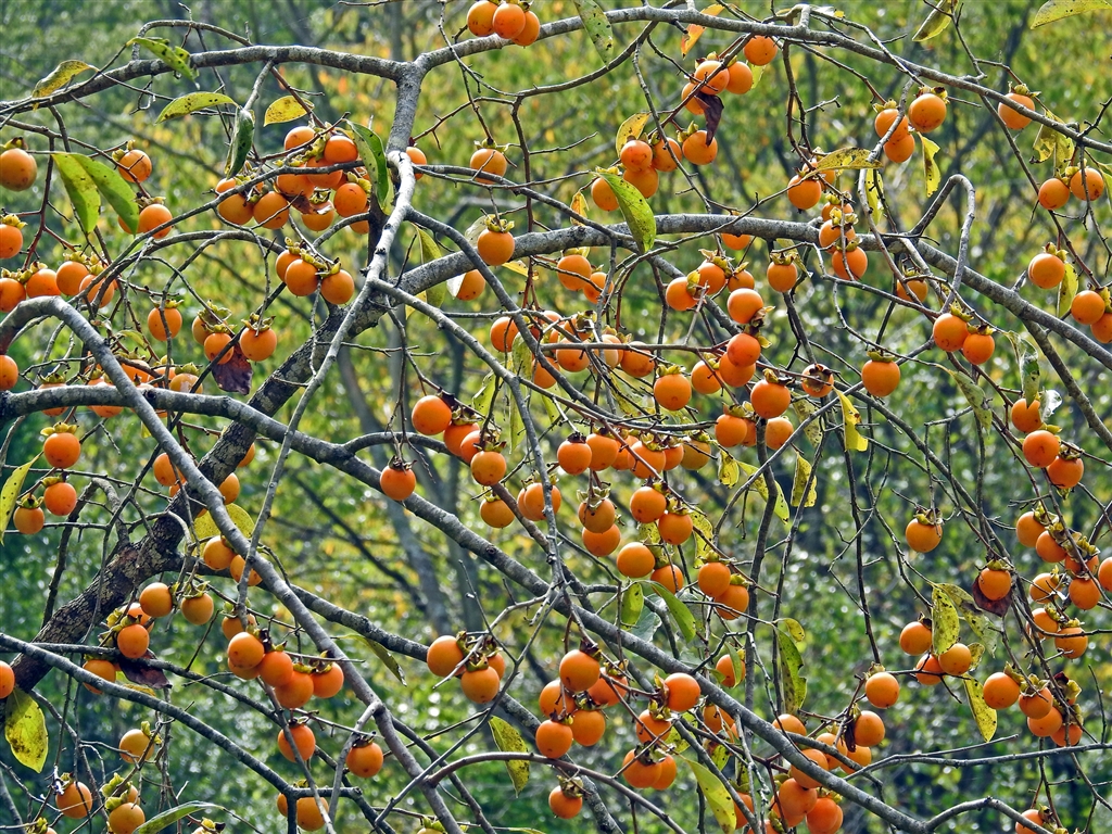 マメガキ=シナノガキ φ2p程の柿渋を採る為の柿。熟すと食可。台風によく耐えた
