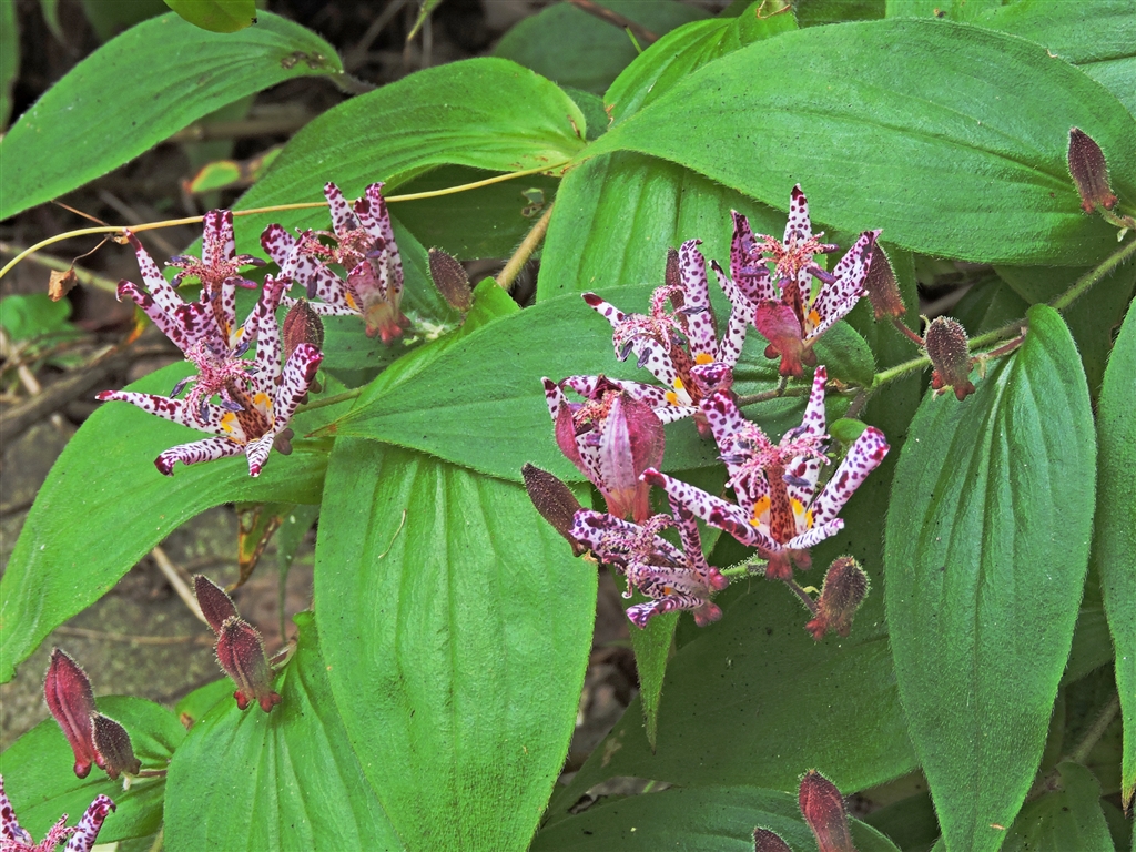 ホトトギス 日本固有種。山地半日陰に自生。花の斑点を鳥ホトトギスの胸模様に見たてた