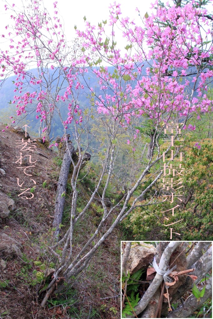 縛り付けられたツツジの枝