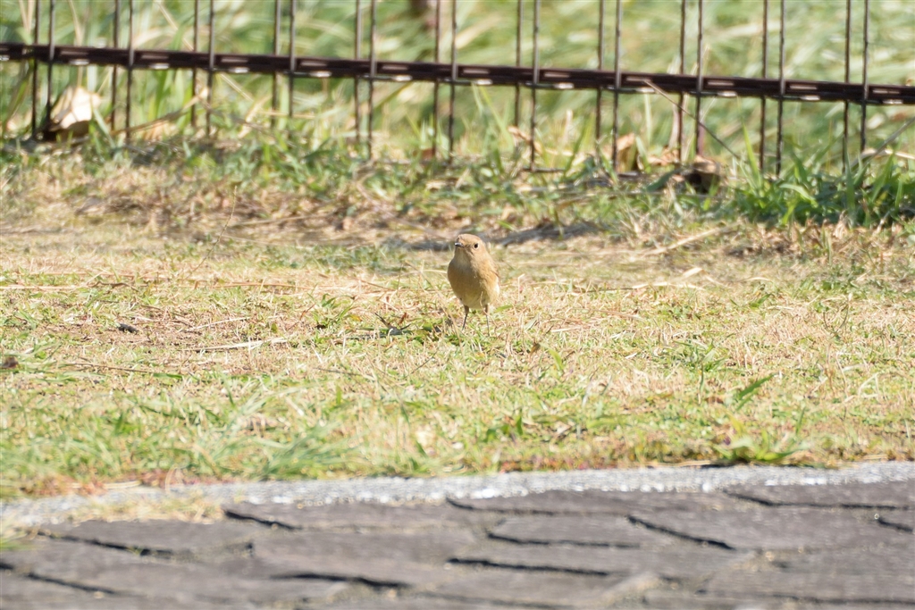 何となく不安そうに公園の芝生に舞い降りていたジョウビタキ♀