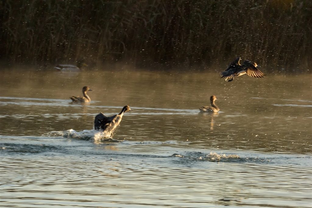 朝日の中で