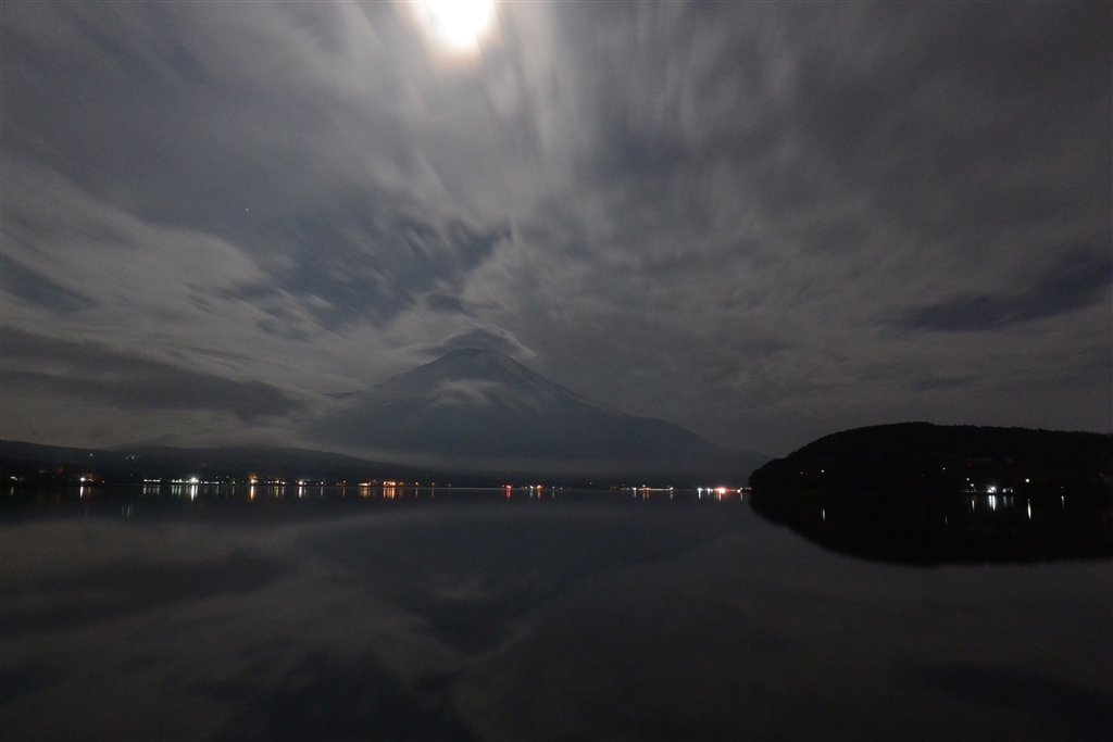 夜の山中湖からの富士山
