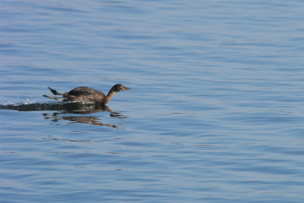 滑るように動体着水し急減速、カメラは行き過ぎた