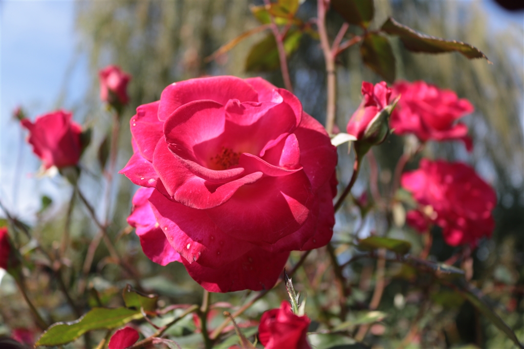 赤いバラ囲まれて