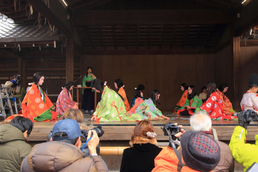 平安装束を身に付けて最初は楽しくかるた取り