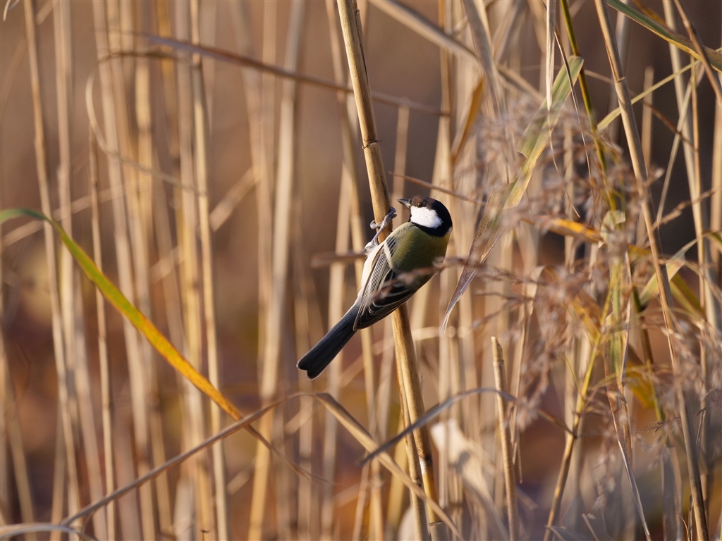 淵のアシに止まっていたシジュウカラ