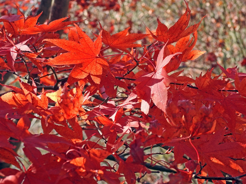 オオモミジの紅葉。オオモミジは葉も大きく鋸歯が細かく整っている。