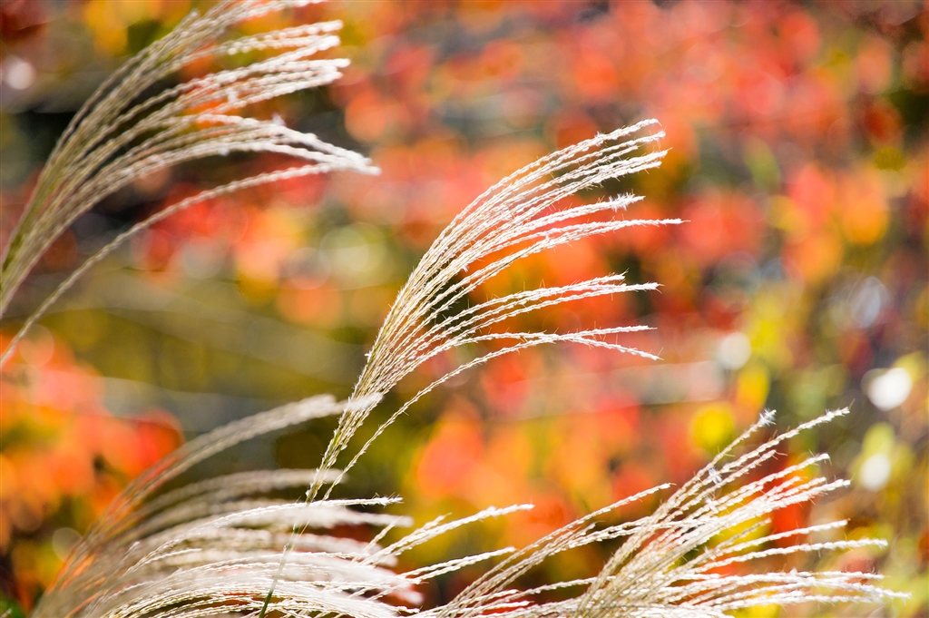 ススキの背景も紅葉が似合います
