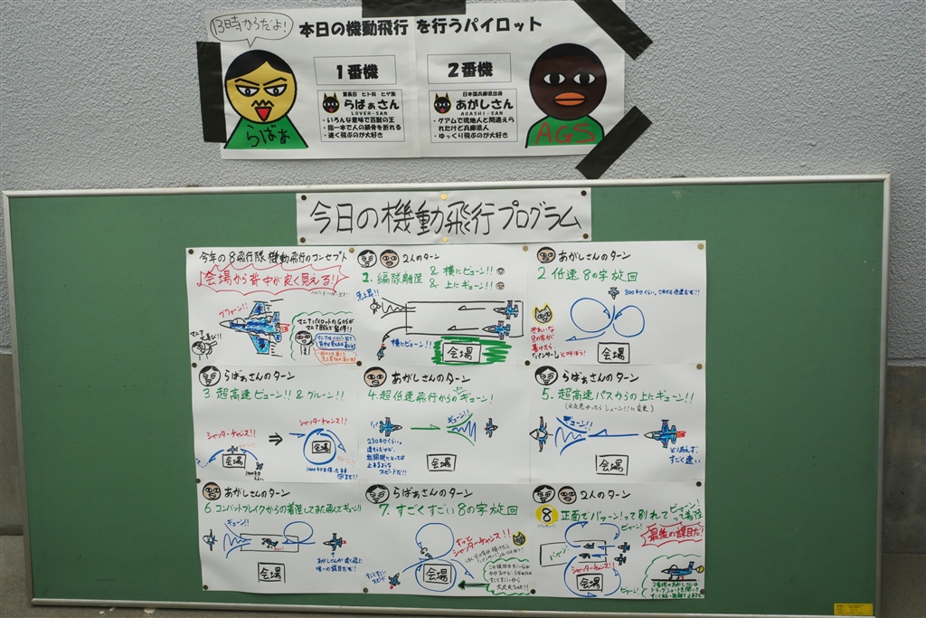 8スコの建屋に貼ってあった、機動飛行プログラムとパイロット紹介