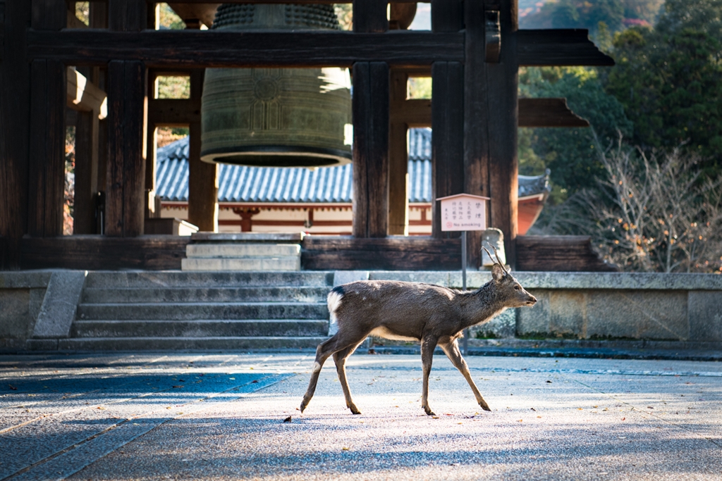 東大寺の鐘楼前にて