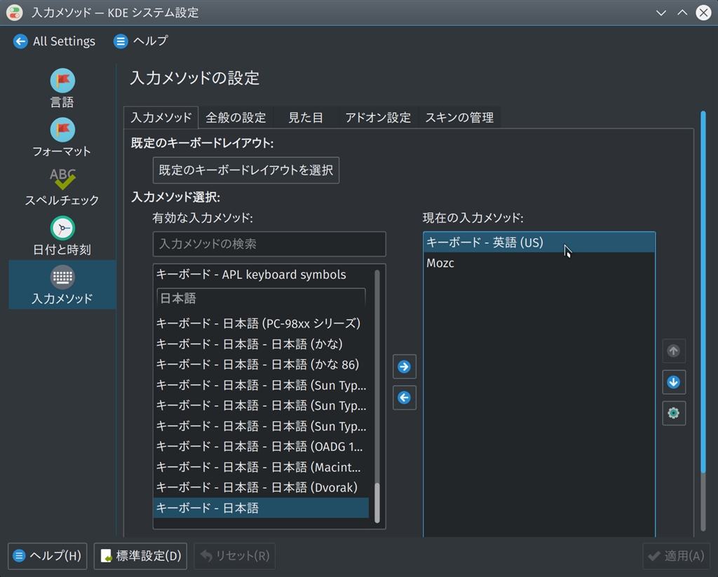 入力メソッド設定