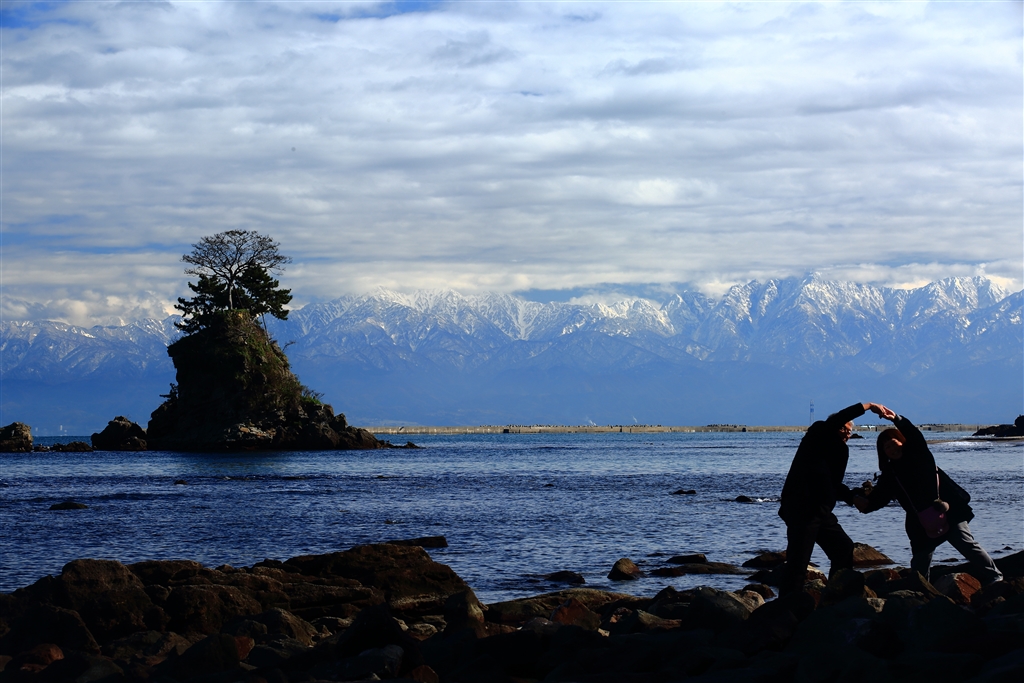 「雪山讃歌」 富山雨晴海岸 対岸は立山連峰