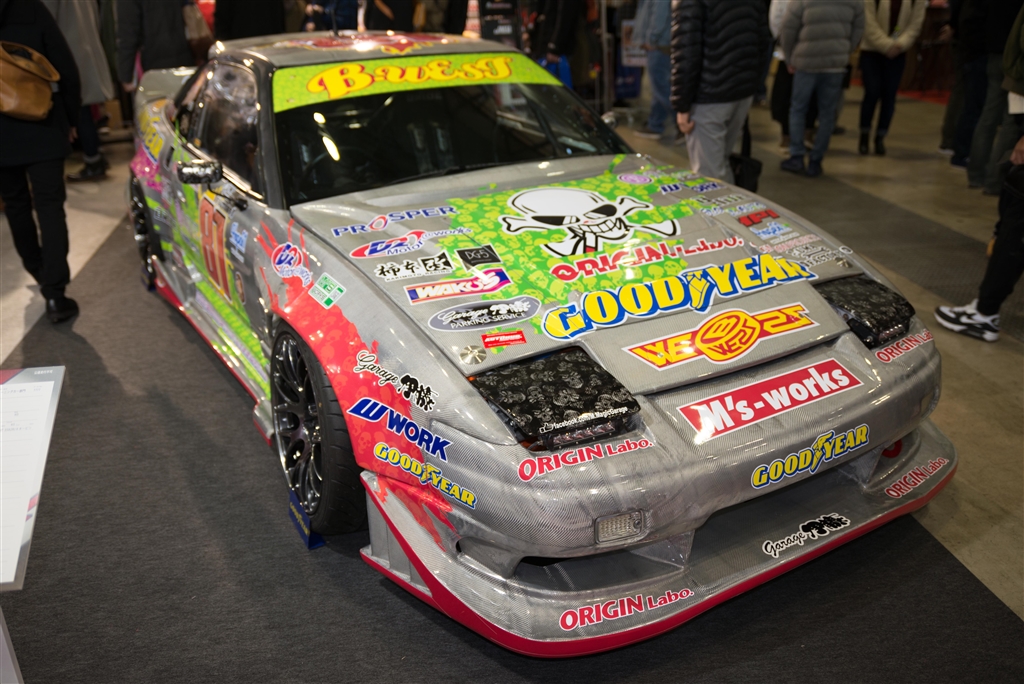 バンパーあたり、カーボンの目が