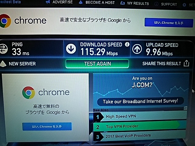 スピードテストの結果です。