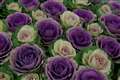 葉牡丹の葉でしょうか、その上にしっかり張り詰めた大きな水滴が