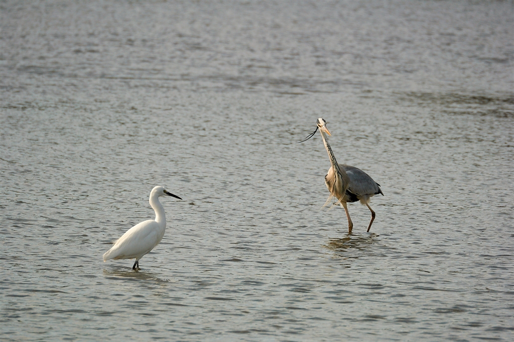アオサギ君「気取った歩き方をする奴が来た」 シロサギ「・・・・・」