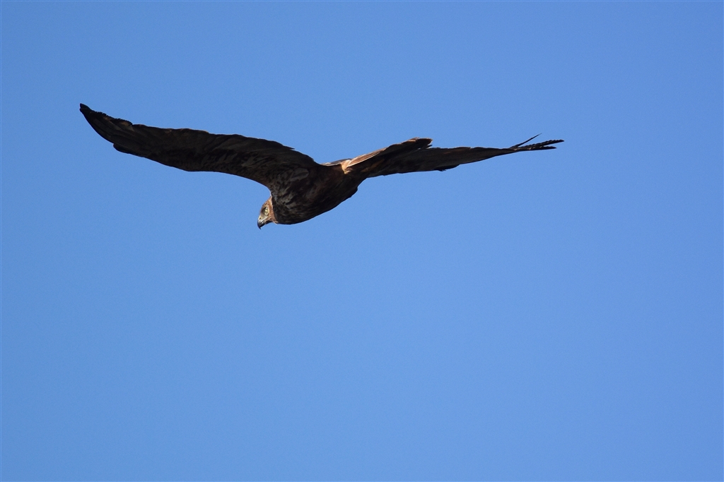 ゆく酉年に因んで、横睨みで遠ざかるチュウヒです
