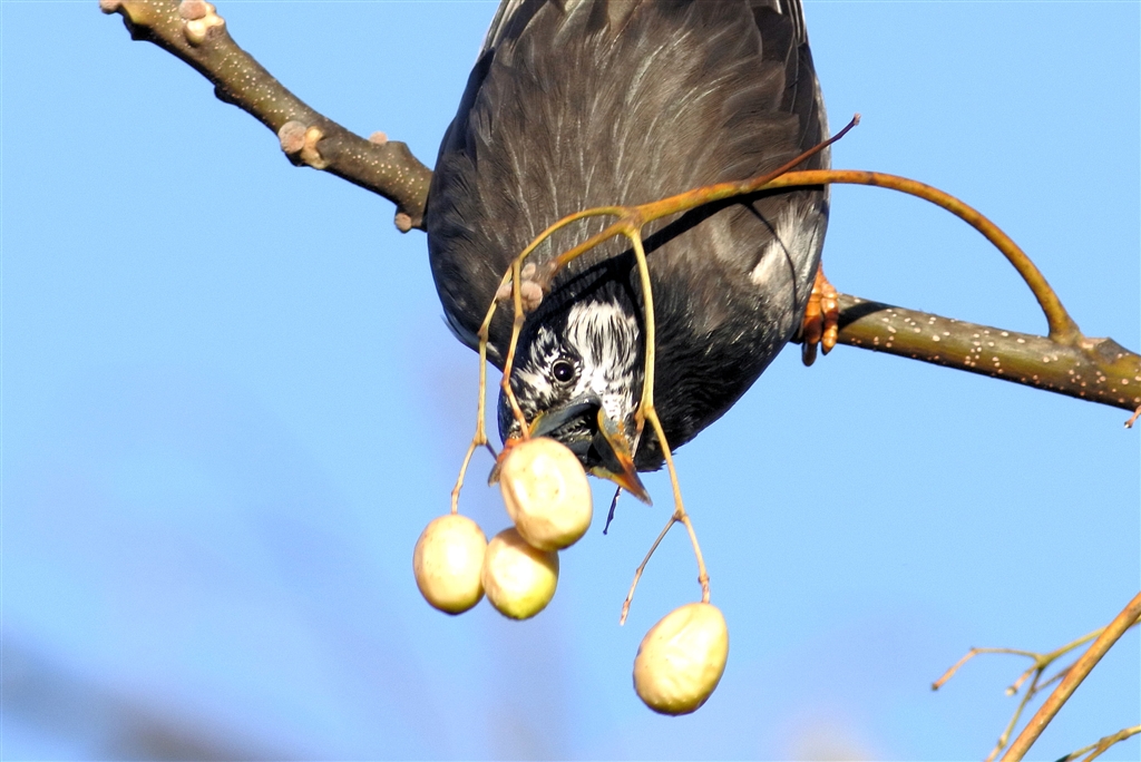 栴檀の実を食べるムクドリ