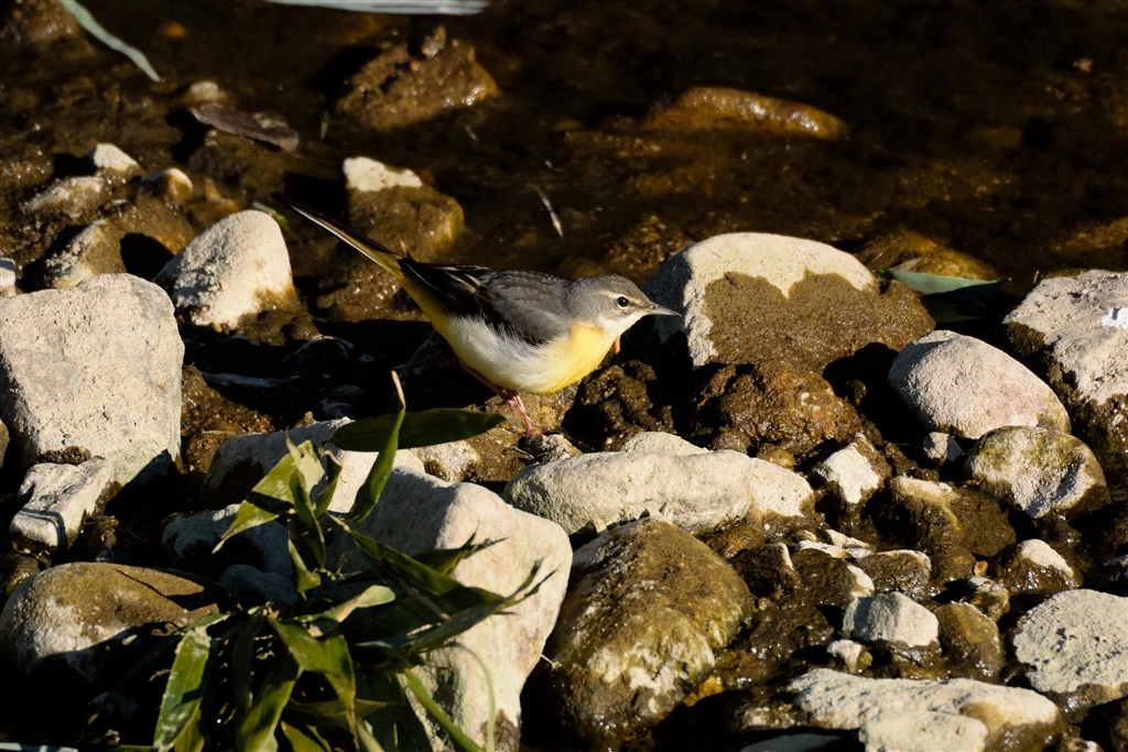 眼下の河川敷で餌を探すキセキレイ