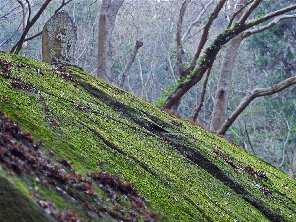 ここは里山山麓の心霊スポット臨済宗正法山宜春禅院。苔むした大岩の天辺に不動明王