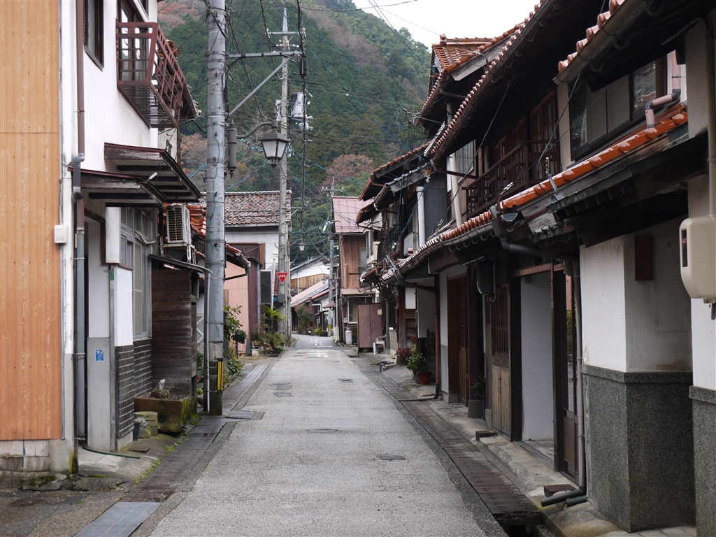 津和野の街並み…赤茶色の瓦が多い。