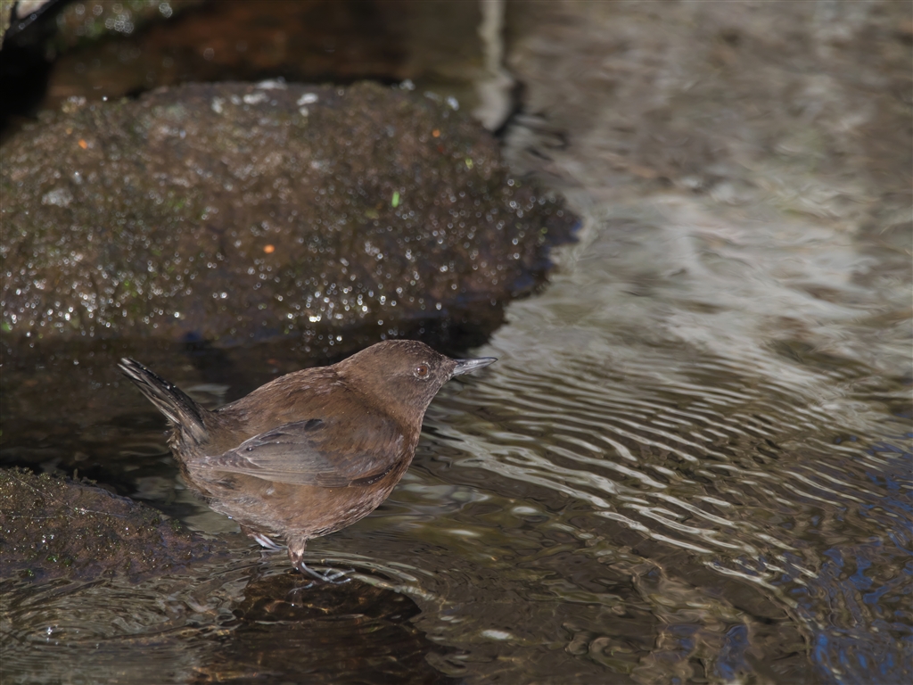 カワガラス 少しでも光量不足だと真っ黒な写り、初めて茶色の羽毛で撮れました