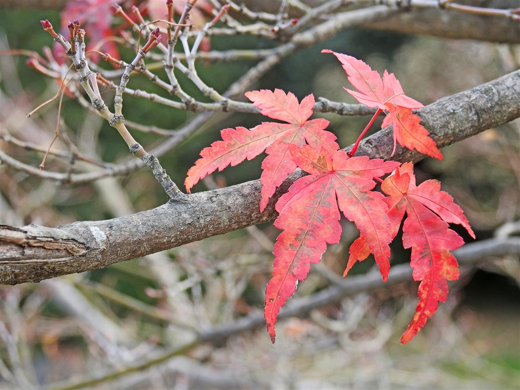 名残りのコミネカエデ 掌状に5裂し中央3裂片は長く伸びる。縁に重鋸歯