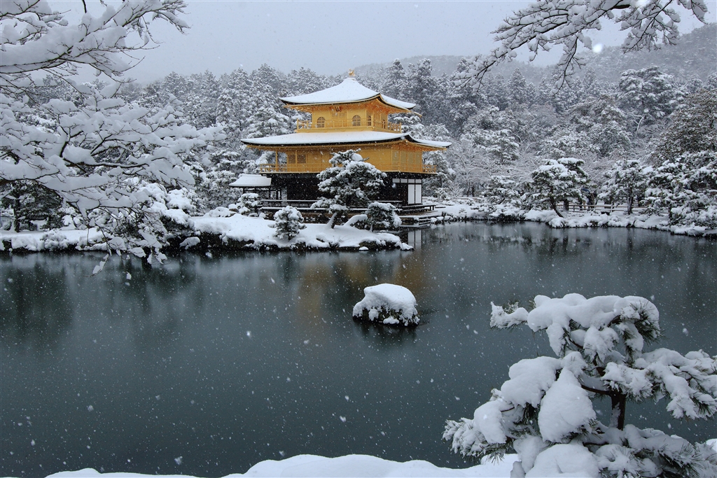 この日は京都でも大雪で、金閣寺も綺麗に雪化粧しました