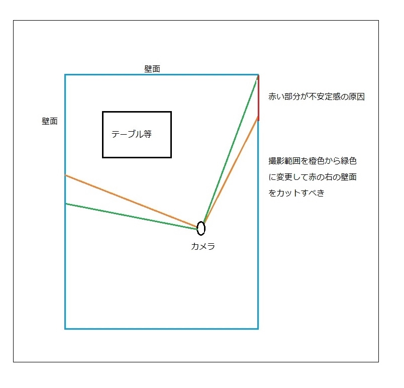 対向する壁面に正対した作例