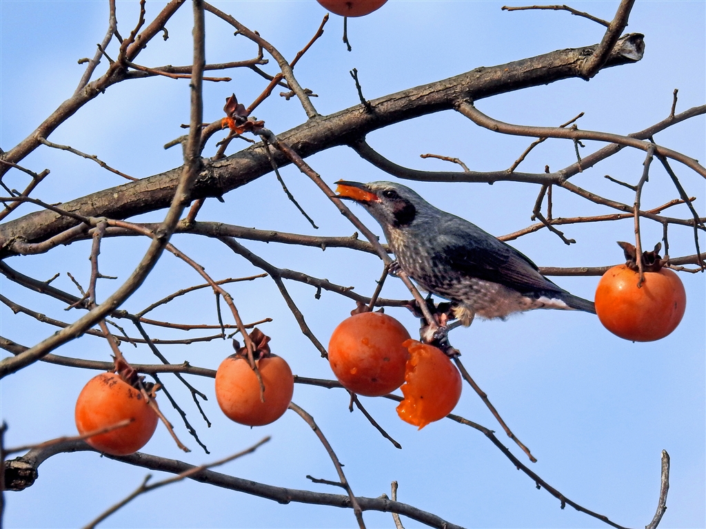 柿食うヒヨドリ4態、その3