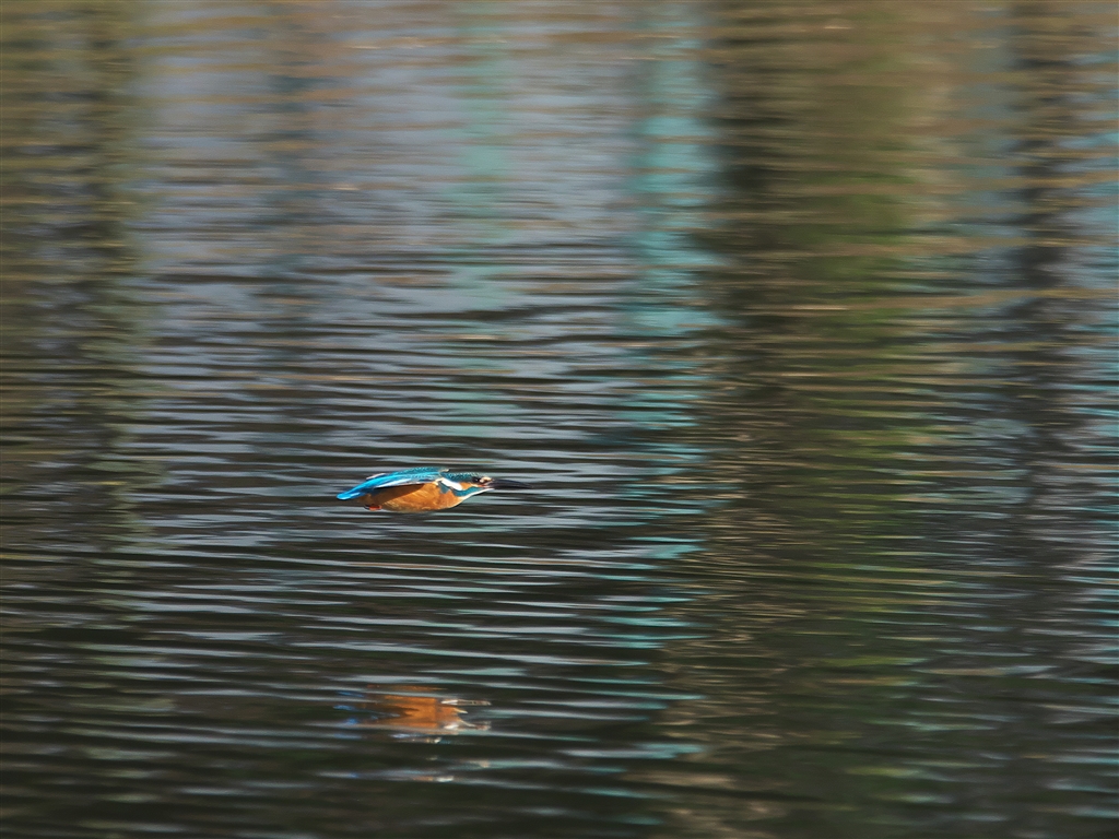 地上の木々など水面への写り込み、波紋も加わり面白い
