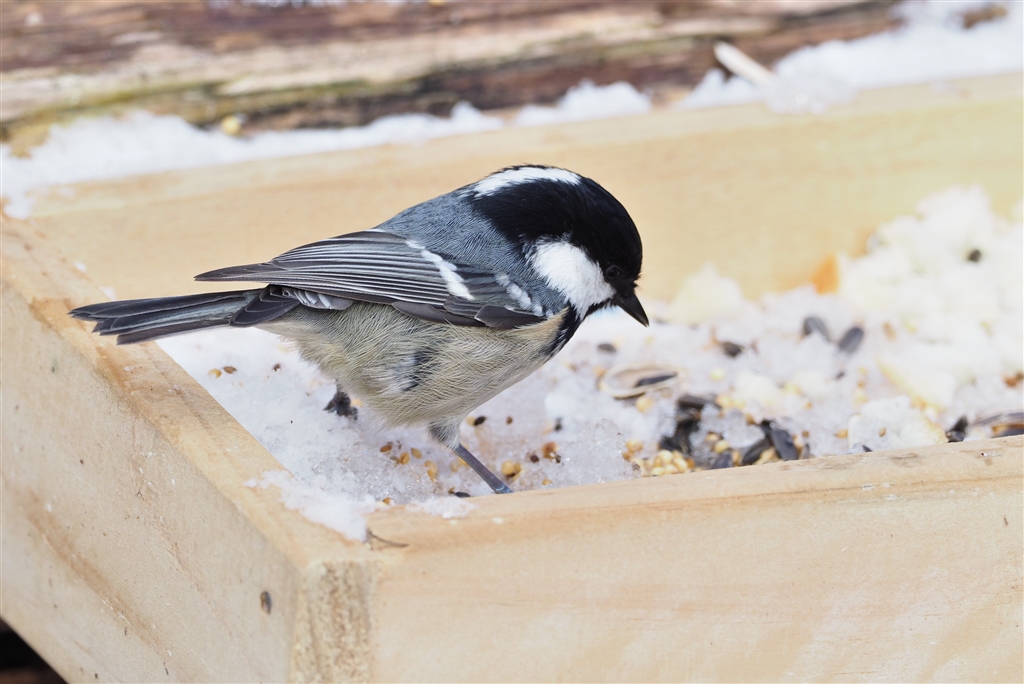 新たに設置された餌台で物色中・・・