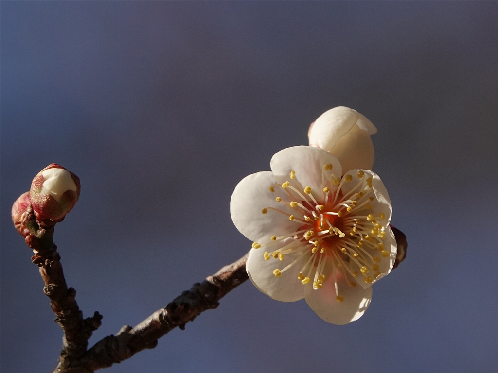 偕楽園公園 白梅もやっと1輪、2輪と咲き始めました