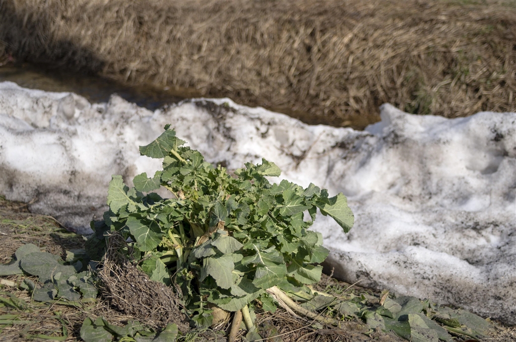 菜の花と残雪