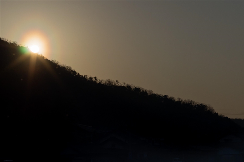 夕方の太陽、ゴーストが少ない位置に撮りました。