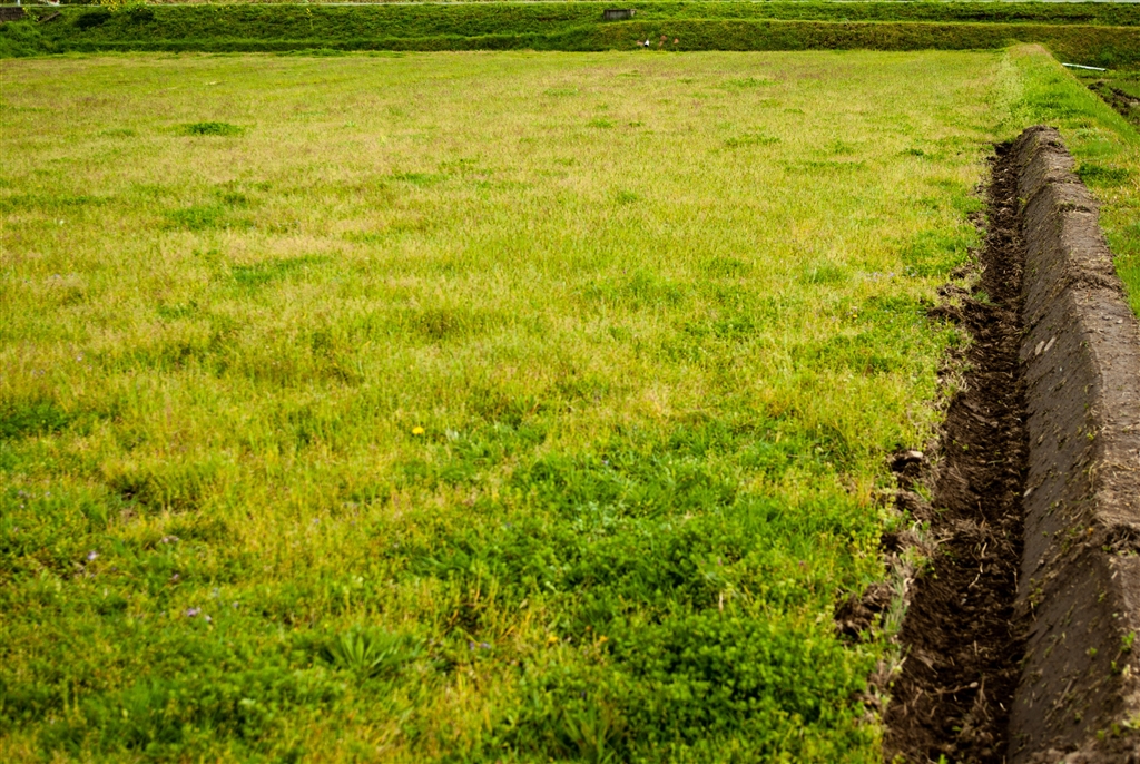 畔に石が多くて機械破損