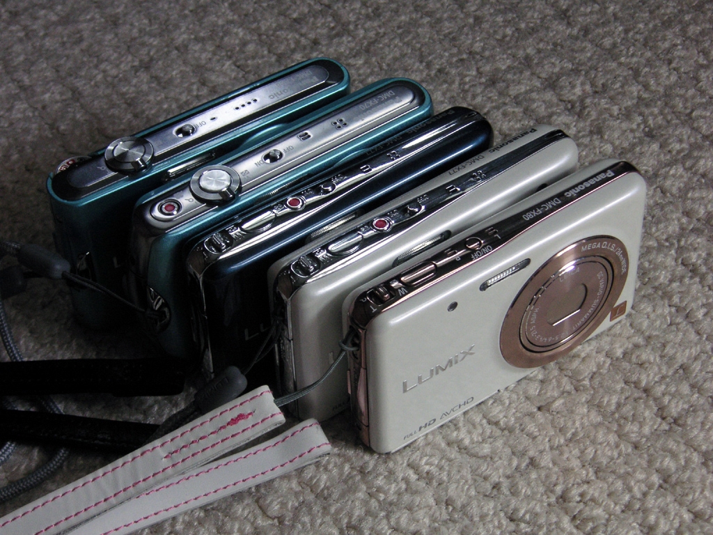 スリムコンデジ一例 手前からFX80/FX77/FX77/FX70/FX66