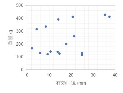 有効口径 vs. 重量(相関なし、というか二分化・・)