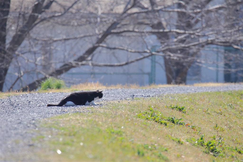 鳥を狙う猫。それにしても春霞