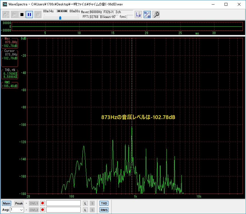 図4 元音源+チャイムの音源(-96dB:減衰)