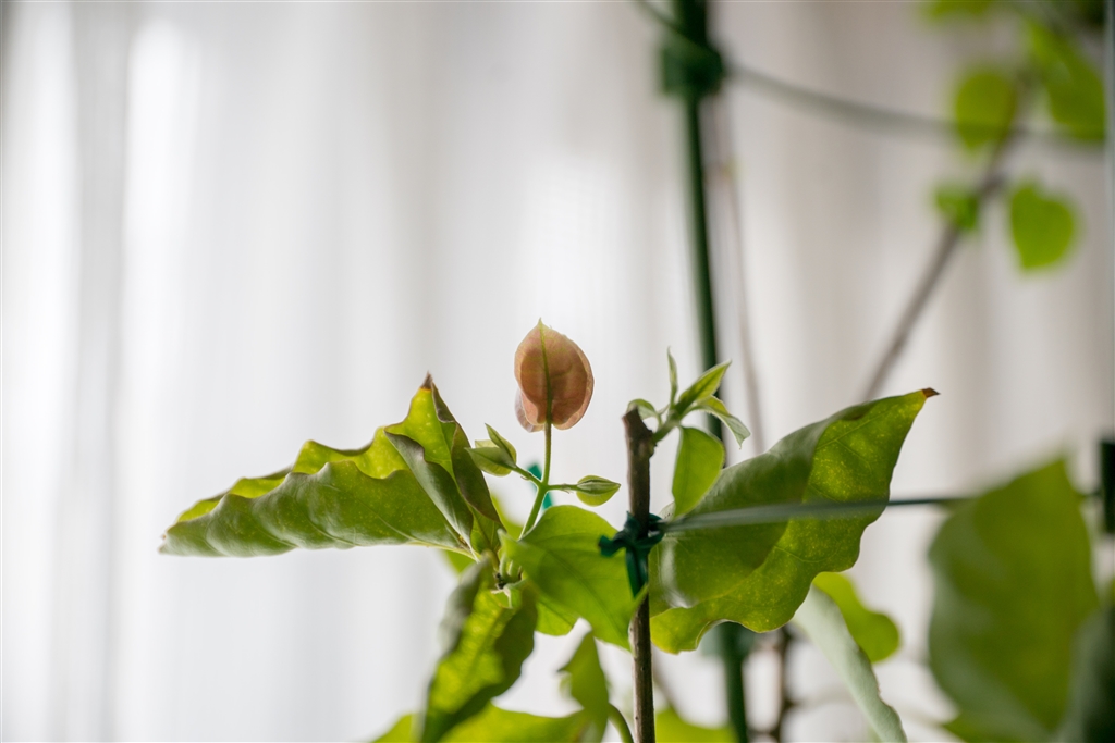 屋内のブーゲンビリアに花がつき始めました。