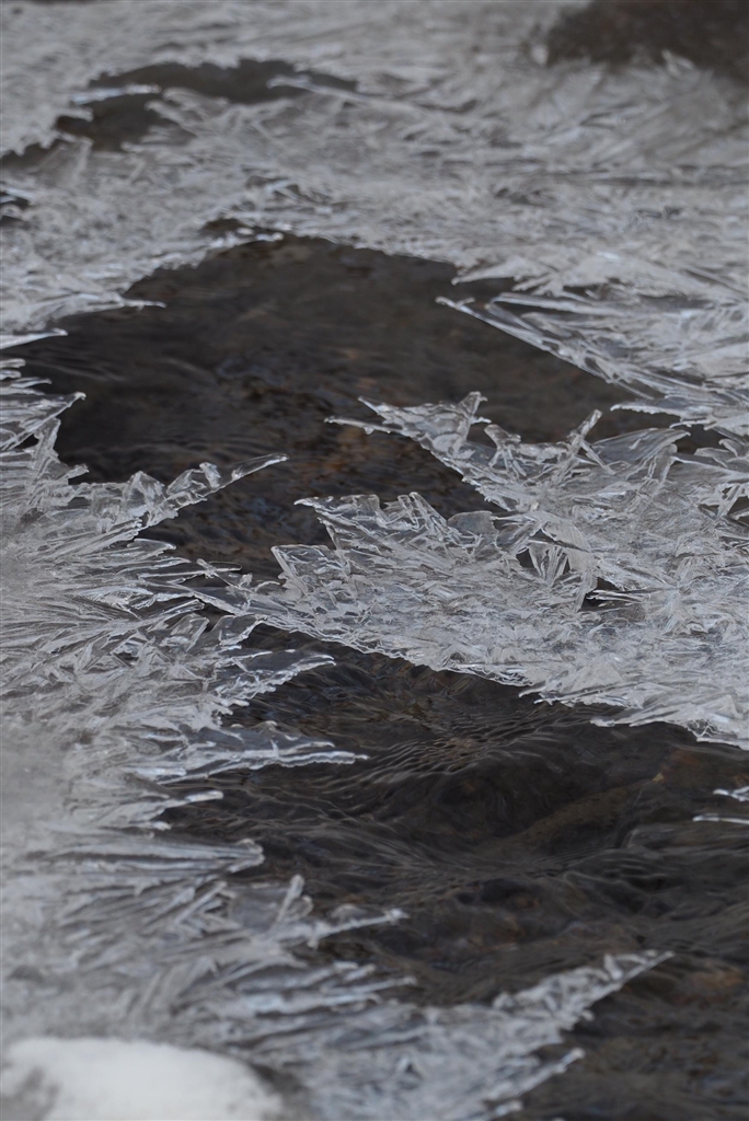 小川の表面が部分結氷