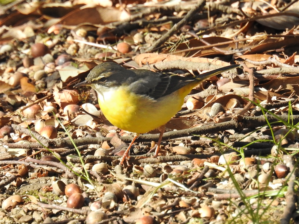 また会ったキセキレイ。ドングリは食べれないので下に潜む虫を食っていた。換算1100o